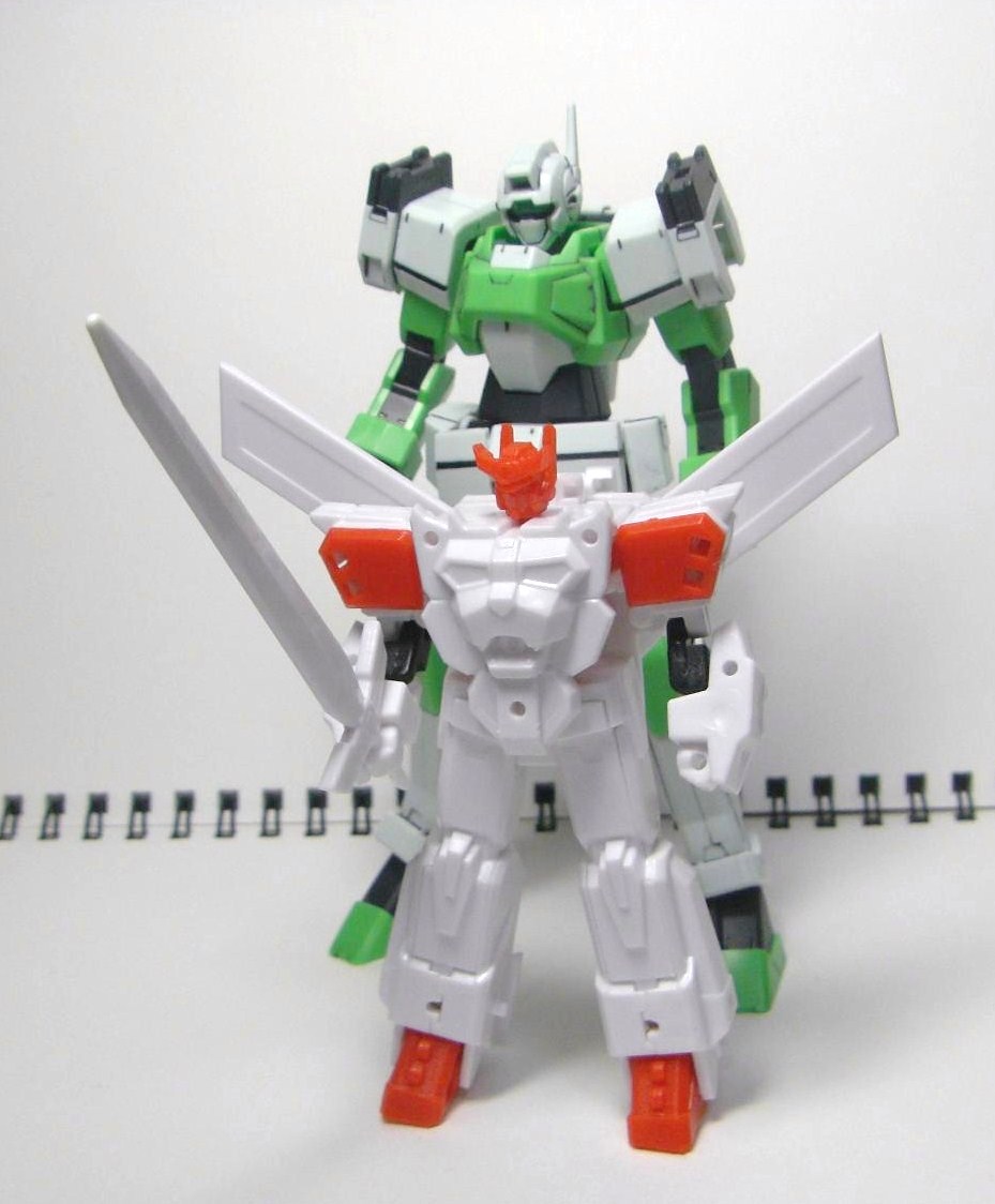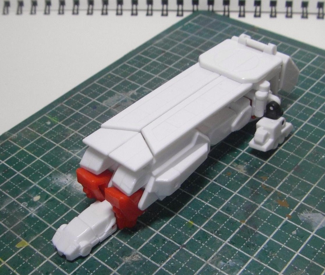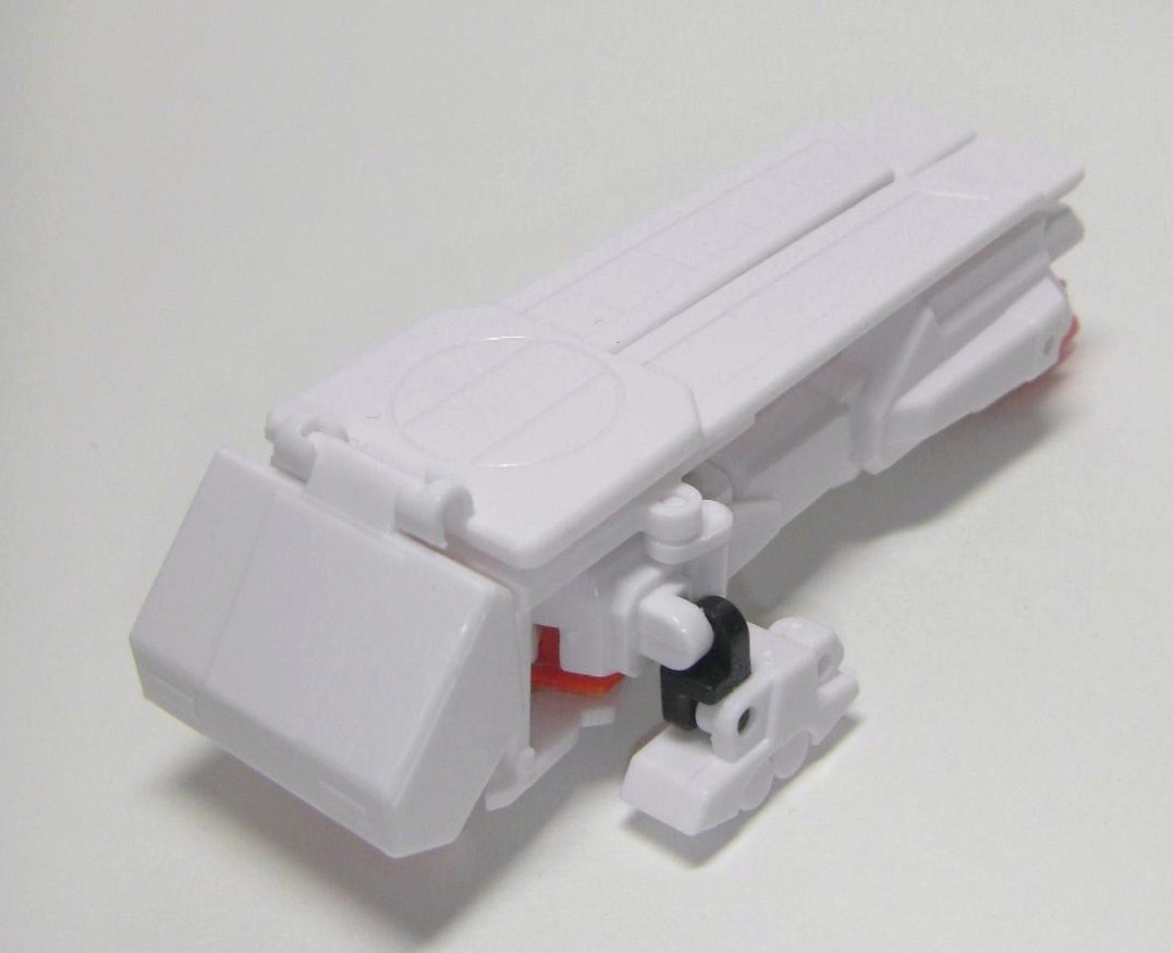 フロント部(合体時のつま先)を折りたたむと小さなへこみが現れ、これをエクスカイザーの後頭部のこれまた小さな爪に噛ませる事で、接続形態にもできます。ぶっちゃけコレ自体はあんまり印象深い訳でもありませんがね。