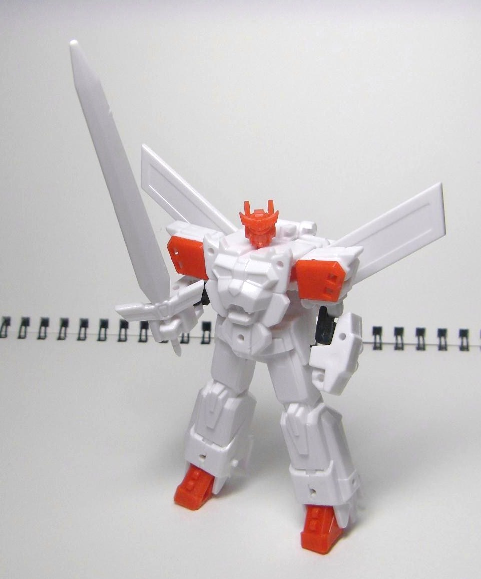 可動は脚が左右に開く、肘が曲がる、頭が回転するくらい。武器として、プロポーション重視のカイザーソードが付属します。これがまたカッコいいんだな。