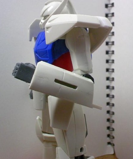 HGインパルスをお持ちの方なら知っていると思いますが、あのキットには変形の都合上、肩が根元からスライドして90°上に曲がるという機構が存在するのです。
