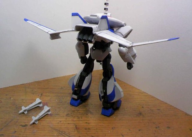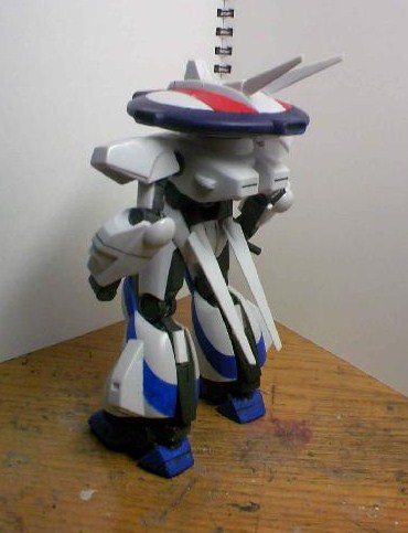 後ろから。最低限必要な塗装は股間・脚のバーニアとモノアイくらいでしょうか。