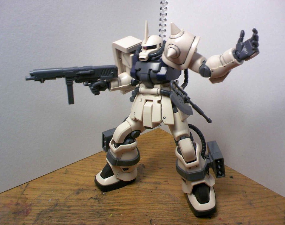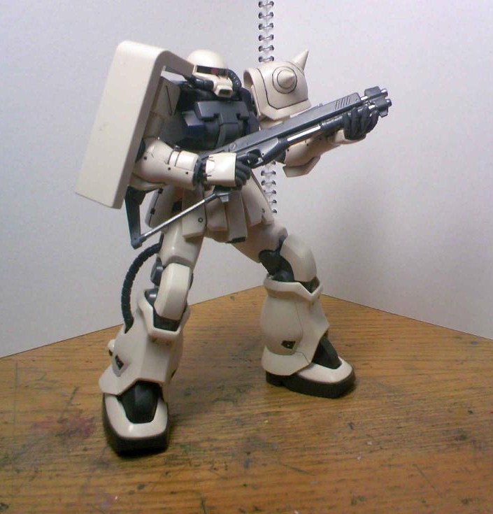 ちなみにジオン(特に公国)系MSのキットは手首の共通化が進んでおり(連邦も然り)手甲のカバーが無改造で交換できるので、ケンプファーの物に交換すれば大抵のジオン系MSの武装が使用可能です。ちなみにショットガンはケンプファーの手首でしか持てないので注意。