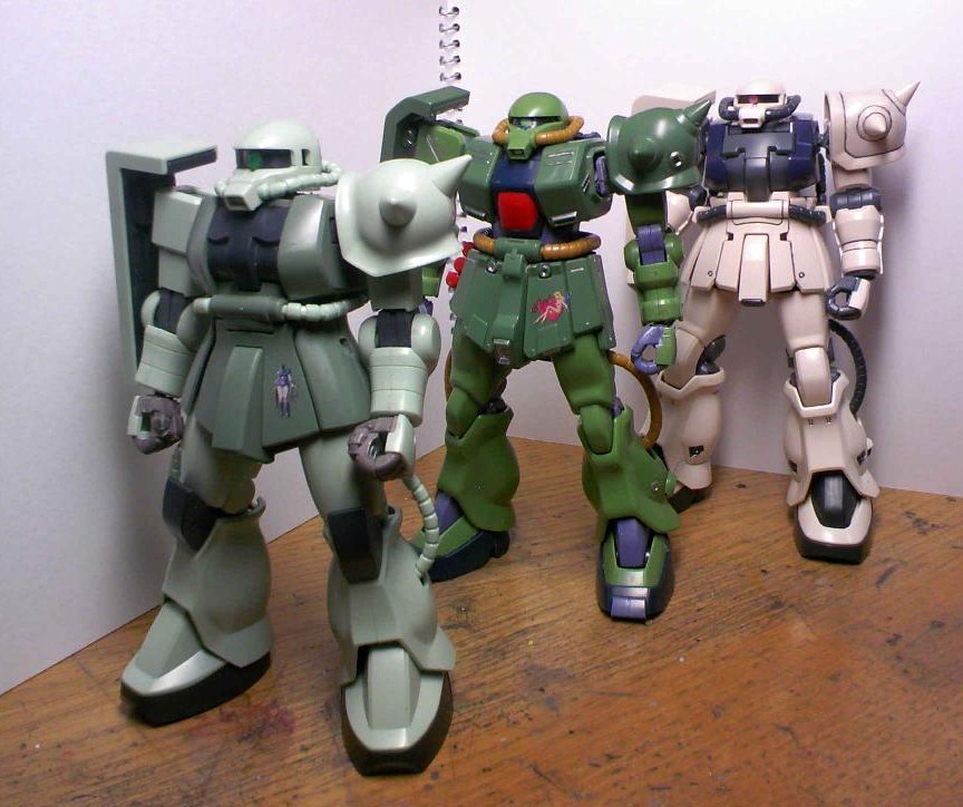 HGUCザク・ザクⅡ改・そしてザクF2。こうやって見るとザクが随分見劣りするな・・・