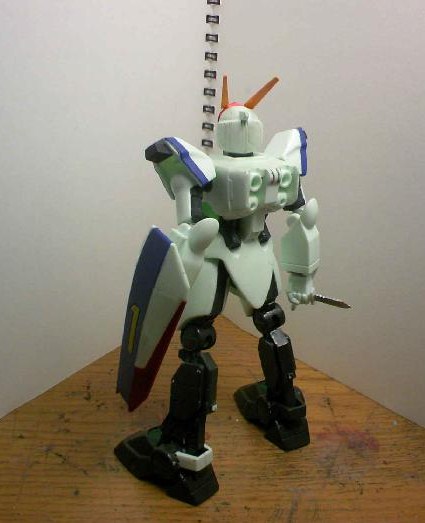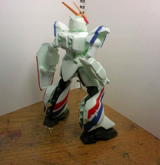 リアビュー。あんまり目立たないですが、バックパックのバーニアと横っ腹のコクピットを張り付けてあります。
