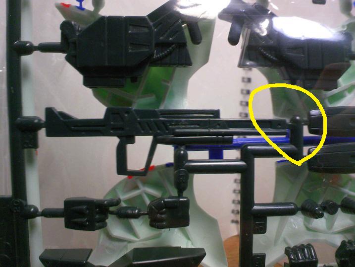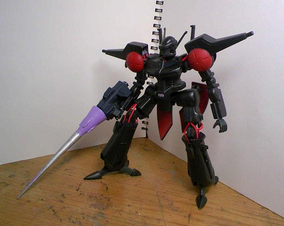 グリップは1/144スケールのプラモでも持てるよう(ベルガ・ギロス本体はすぐに壊れた)、穴を開けテキトーに流用したグリップ(たしかジンハイマニューバ2型の盾だったと思う)をくっつけてあります。