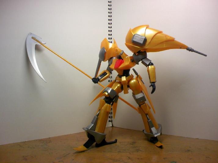 脚部ランダムスレートは展開可能。というか、可動機構は首と膝以外はエルガイムとそう変わらなかったりします。