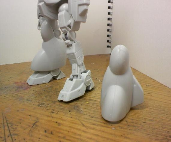 ふくらはぎもプラ板とパテで製造。バーニア類は適当に流用。