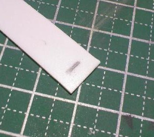 続いて鍔。プラ板に1×2?くらいの線を書く。