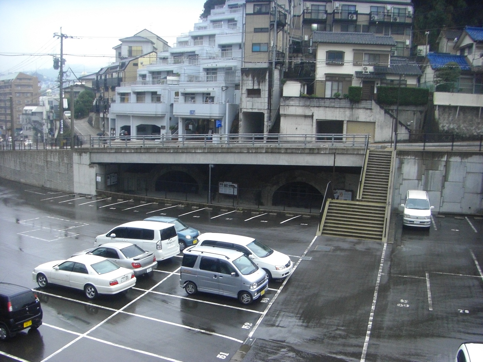 港を出た後、新地のホモ弁(ほっともっとの事ね!)でお弁当を買ってどっかで腰を下ろして食べたいなぁと思って少し坂の上の方を上っていたのですが、中々そういうとこに出会うことなく延々上り続け、結果的に祖父の母校でもある海星高校の前まで来てしまいました。この時点で結構な高さを上っています。