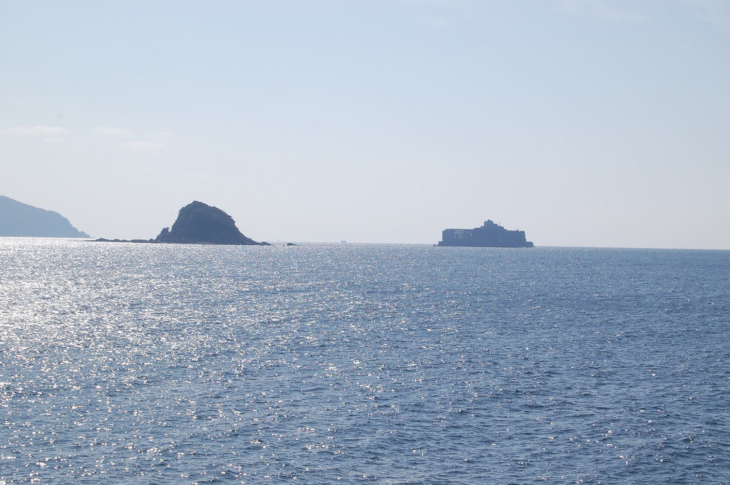ここの海岸というか防波堤からはいくつかの島が見えます。右手にあるのが、かの有名な軍艦島になります。クルーズで行ってみてもよかったかなぁ・・・