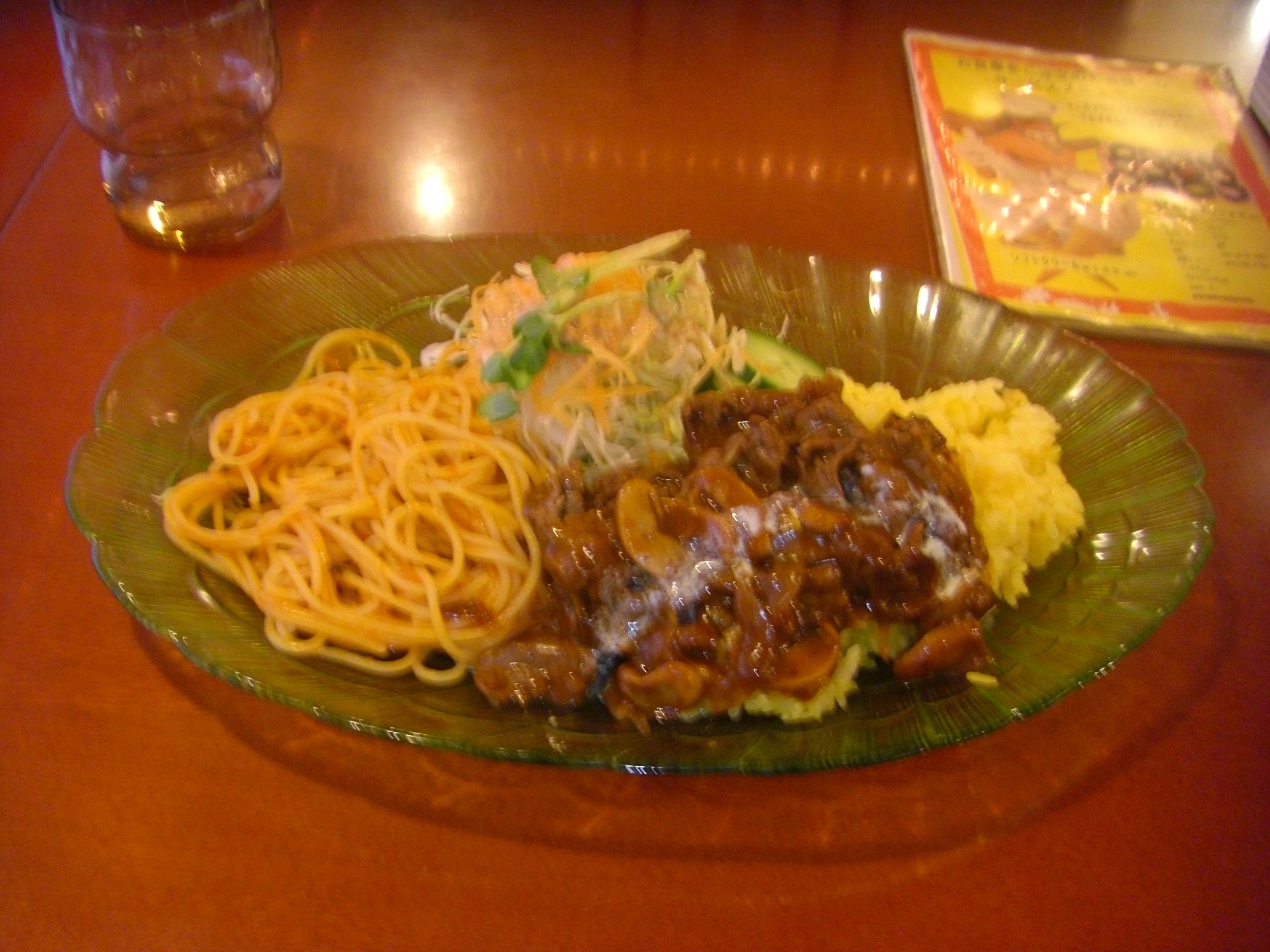 お昼は入った喫茶店にて安かったトルコライスをば。ビーフストロガノフ(なのかな・・・)が乗っており、なかなかの味でした、いつもはトンカツだったりから揚げだったりするんですが。