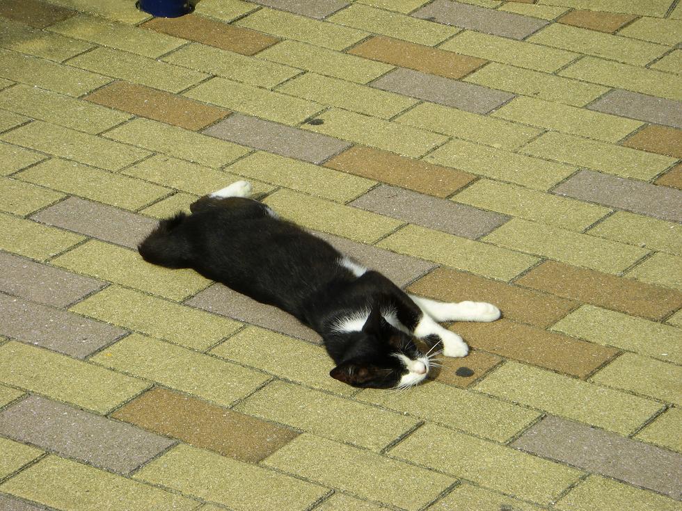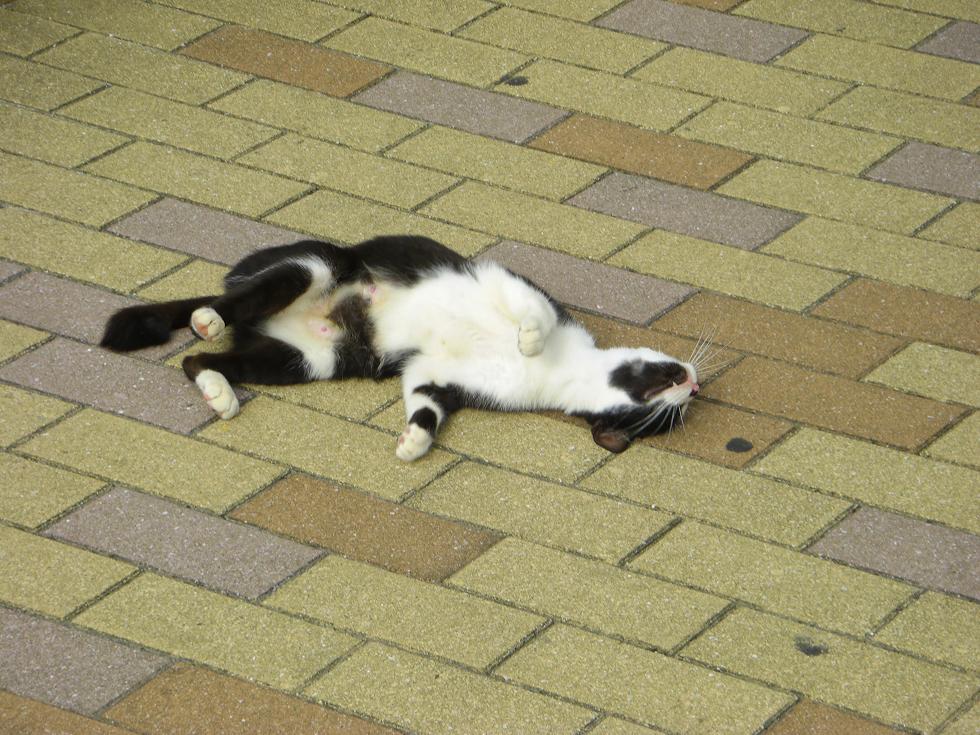 人の目もなんのその、道のど真ん中で伸びをする猫。あんまり堂々としてるものだからちょっと笑ってしまった(笑)