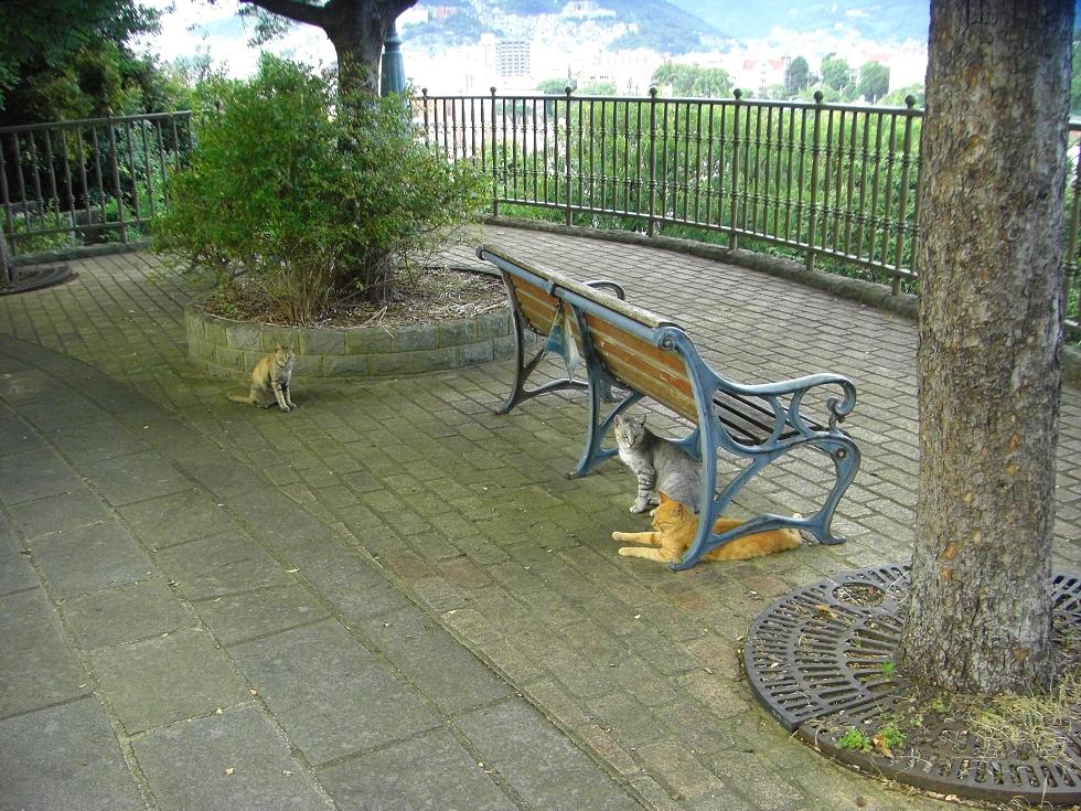 写真を撮るついでに一休みに来たベンチには、既に猫がたむろしていた(笑)