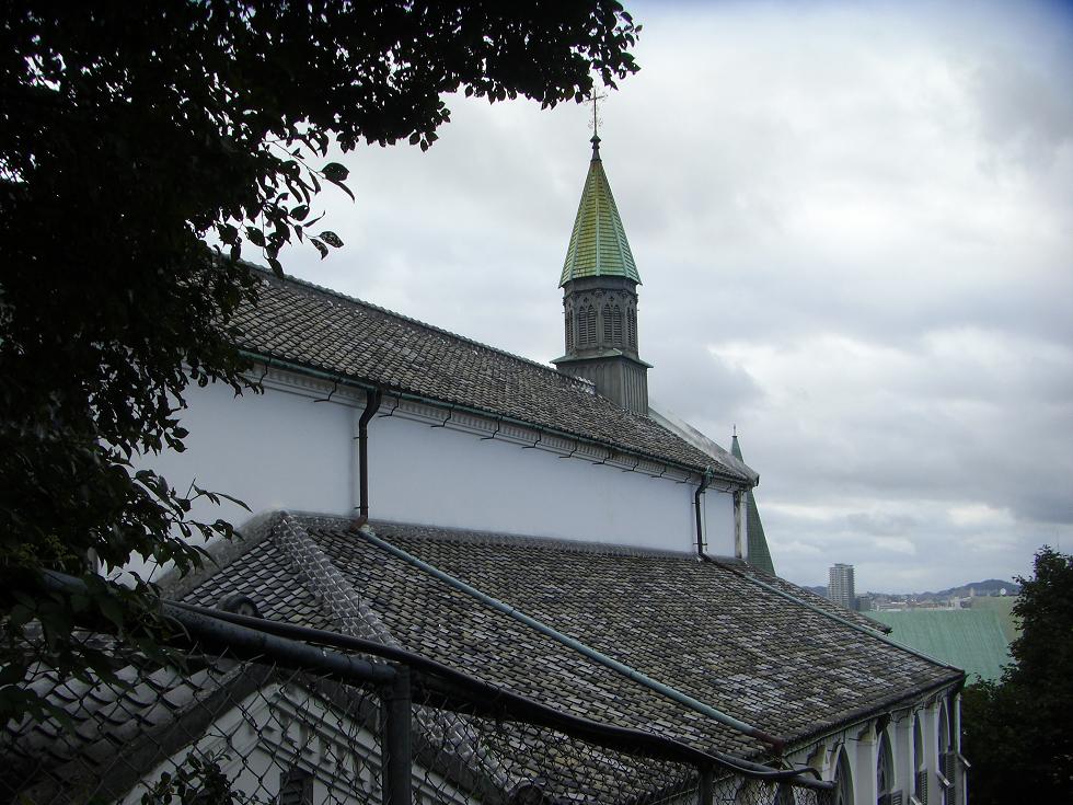 大浦天主堂の裏から。晴れてたらさぞ綺麗だったろう。