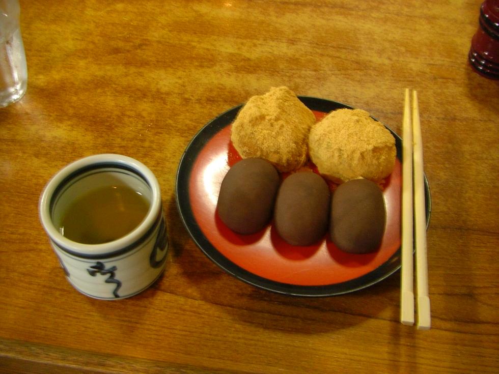 その後は境内のお茶屋でお昼にしてから、食後の甘いものとしてぼた餅をば。