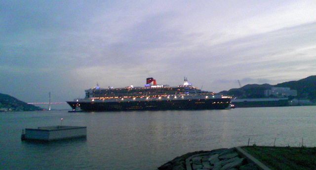 「女王陛下」というのは、イギリスの豪華客船「クイーン・メリー2」の事で、全長345m、全高71m、排水量76000トンの超巨大な船なんですな。