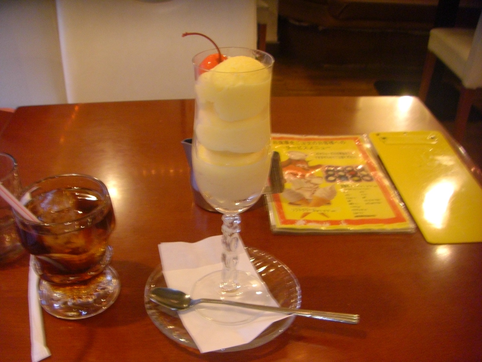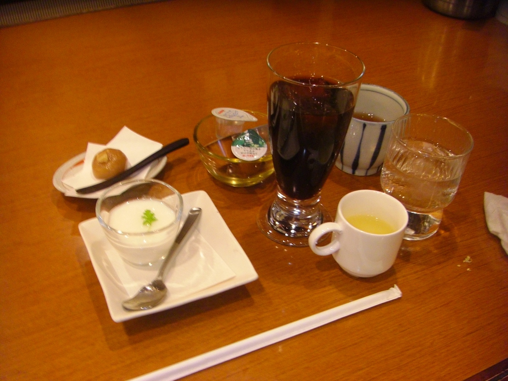 そしたらコーヒーのおまけでお菓子が、杏仁豆腐のおまけにレモングラスか何かのお茶も付いてきたので、元から出されていたお茶とコーヒーの口直しで付く水も含めて、4品の飲み物と2品のデザートを平らげることを強いられました。残すことはしないのが信条なので全部頂きましたが、実にお腹に重たいデザートでした(笑)