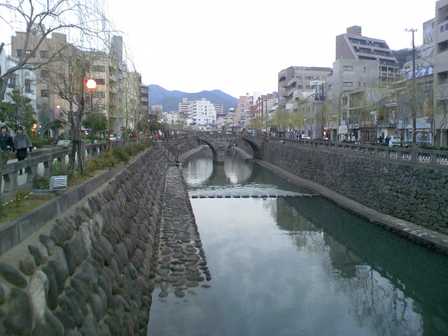 で、その後は諏訪大社に行き(境内のお茶屋は数分前に閉店していたが)、眼鏡橋を撮りつつ市街地へ。