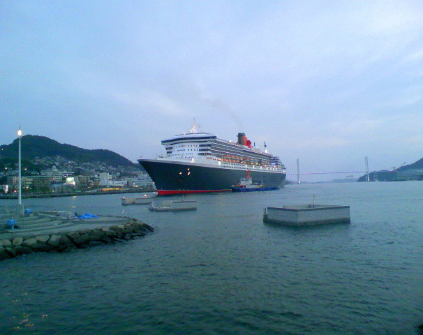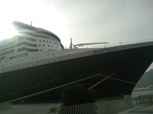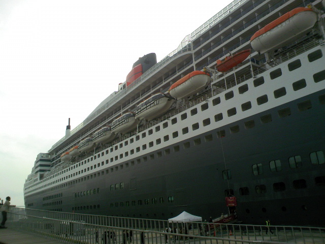「女王陛下」というのは、イギリスの豪華客船「クイーン・メリー2」の事で、全長345m、全高71m、排水量76000トンの超巨大な船なんですな。