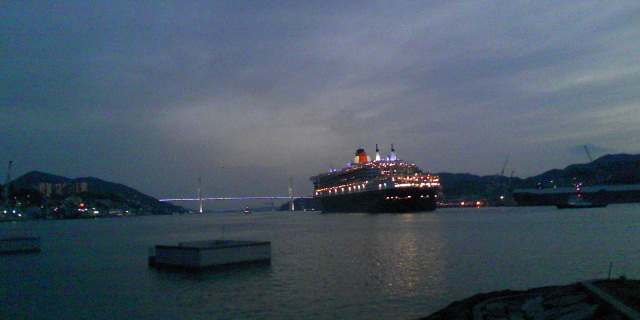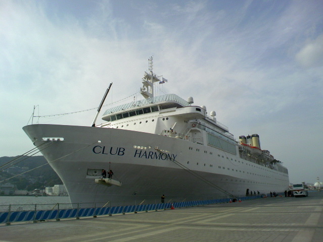 すぐ近くにも韓国の客船「クラブ・ハーモニー」が留まっていて、中々の壮観でしたが・・・桁違いにデカい女王にばっかり釘付けでした(笑)