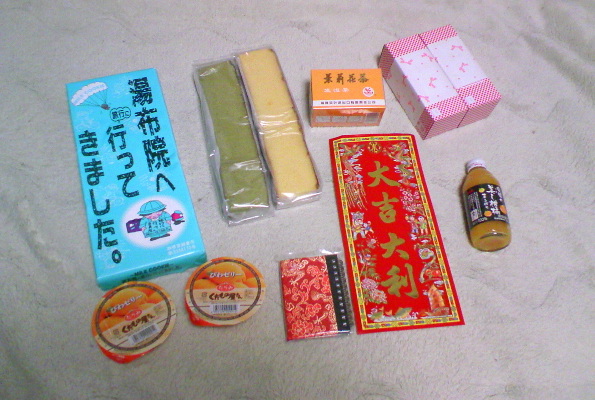 長崎では、恒例的にカステラ3本(1本は既にMTMNにやった)だったり、特産品のびわゼリー、ビードロ(薄いガラス細工のおもちゃ?)、中華街でお茶や手帳、お札を買ってきました。こちらは一部除きクラブの人向けですね。