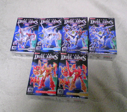 下の箱達は、食玩メーカーの王様カバヤの「鋼鉄の戦騎デュエルアームズ」というオリジナルシリーズで、105円という値段とデザインの素晴らしさに惚れて一気に全種コンプしちゃいました。チビっ子の時じゃ夢みたいな話ですね・・・(苦笑)