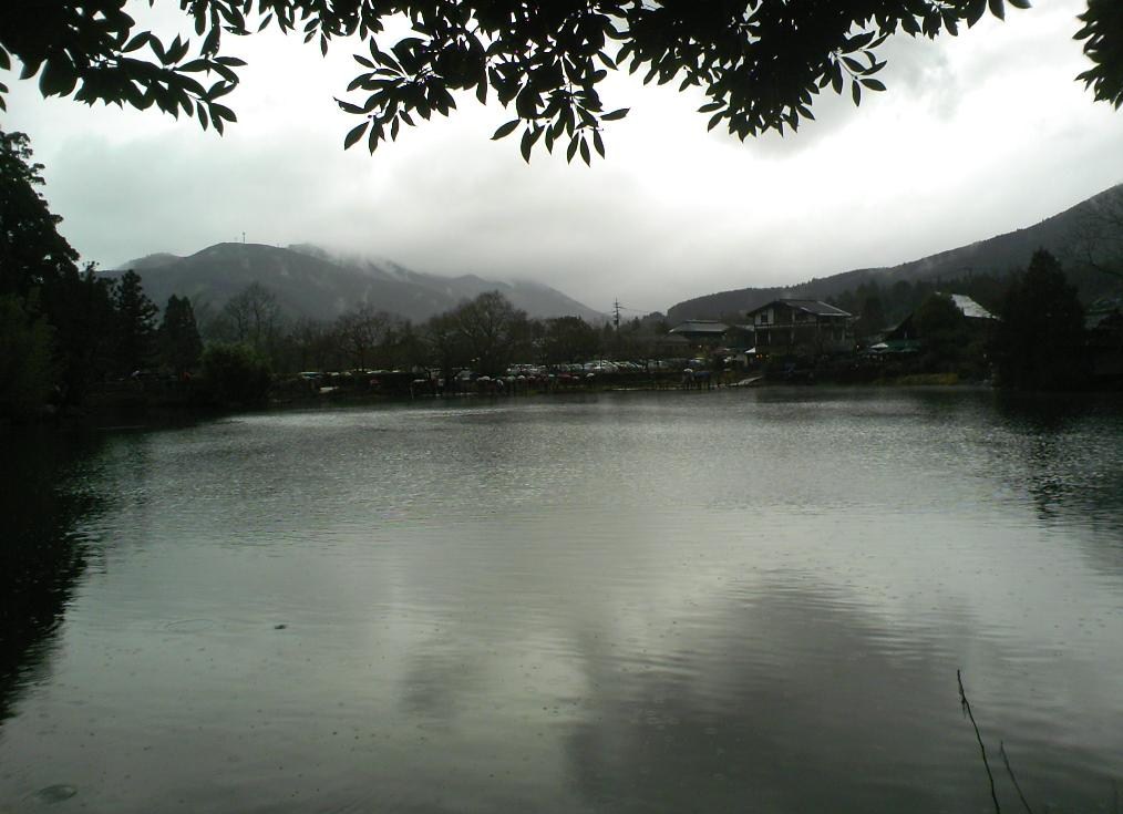 中心から少し外れたところにある湖で、駅前から延びるお土産屋街(湯の坪街道)の終点くらいにあります。