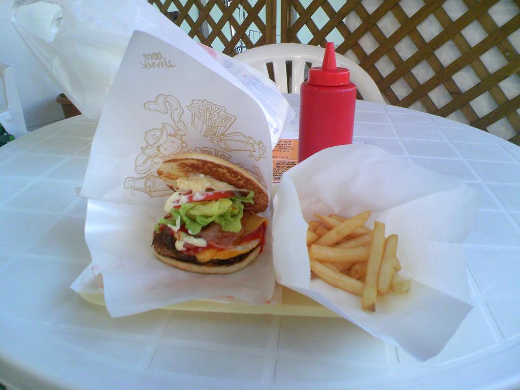 これは佐世保バーガーですが、いい加減ハトとトンビに襲撃されるのが嫌になって、今回は小さいのしか食べませんでした(笑)