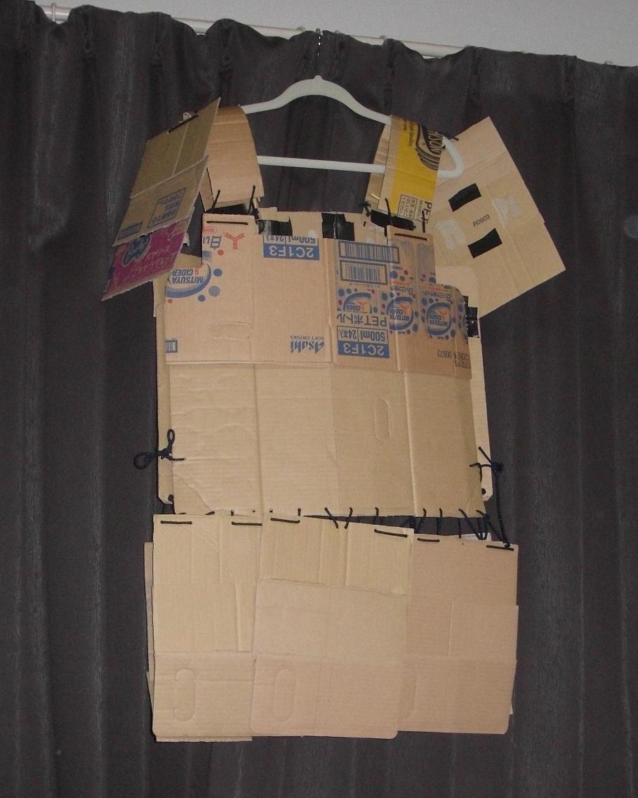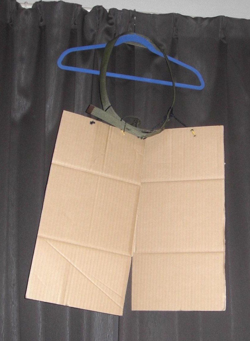 腰の佩盾は、何故か都合よく家にあった作業用のベルトに段ボールをくくりつけて製作。