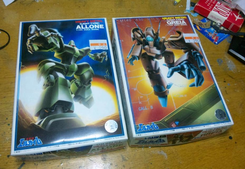 「重戦機エルガイム」から、1/144のアローン及びグライア。
