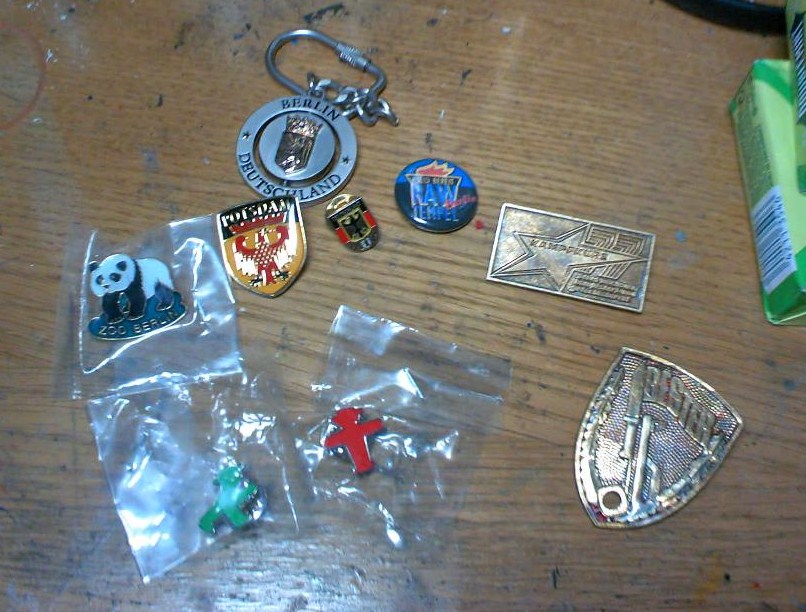 ポツダム隊の隣の丸いのは、バスで拾った謎のカンバッジ(笑)。