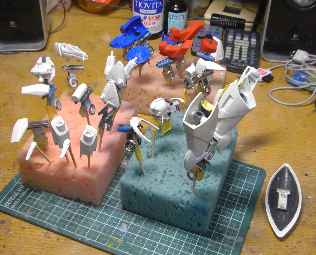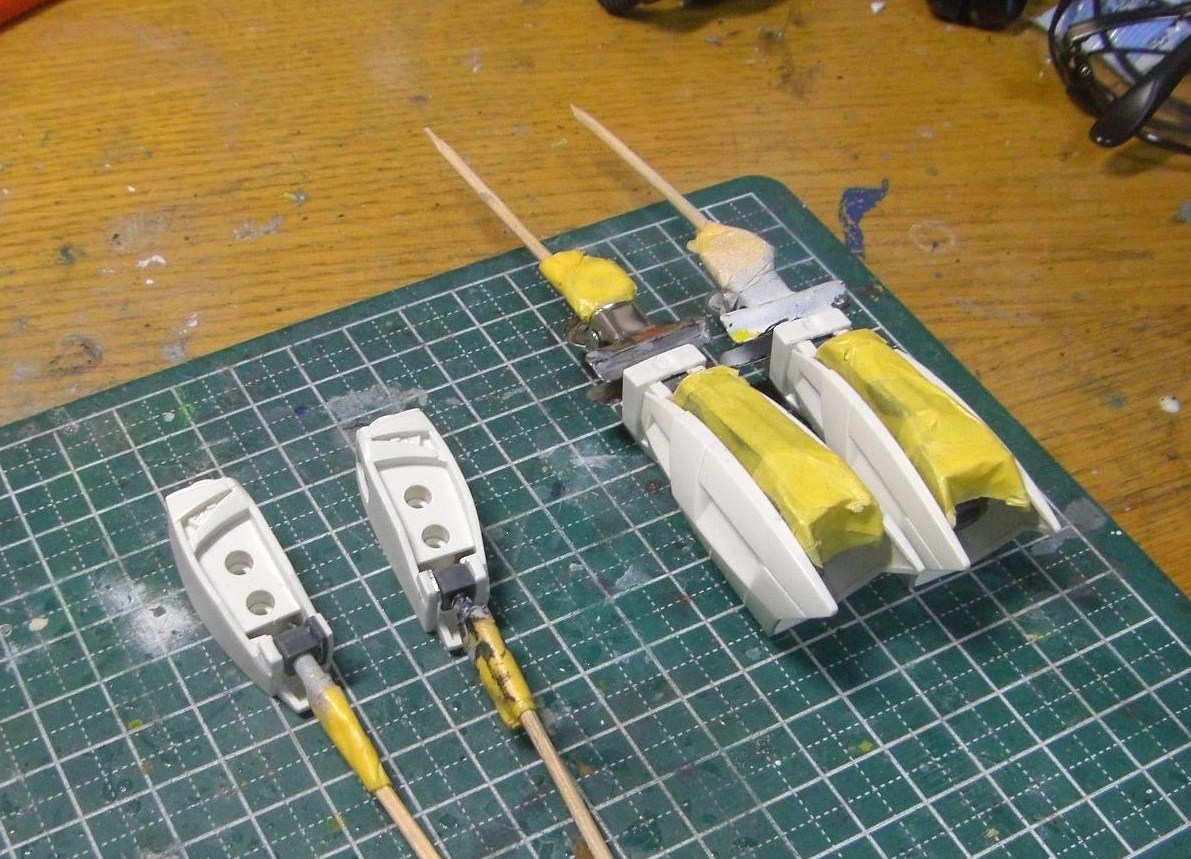 で、そのあとパーツをバラして持ち手に付け、塗装の準備をしました。今日は雨がひどいので塗装は明日からですが。