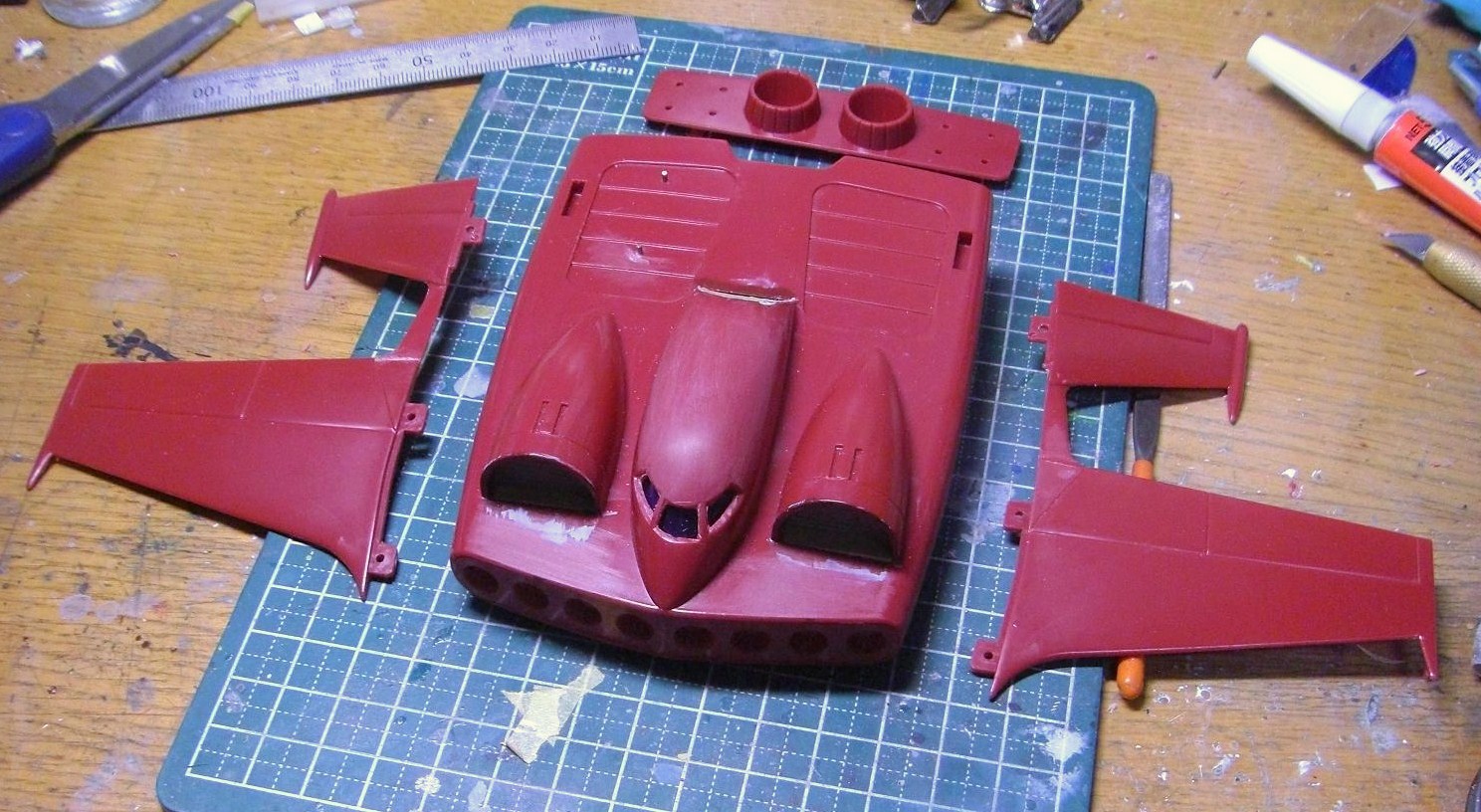 で、1時間ほど置いてから表面を処理し、翼を取り付けます・・・といっても接着はしてませんが。