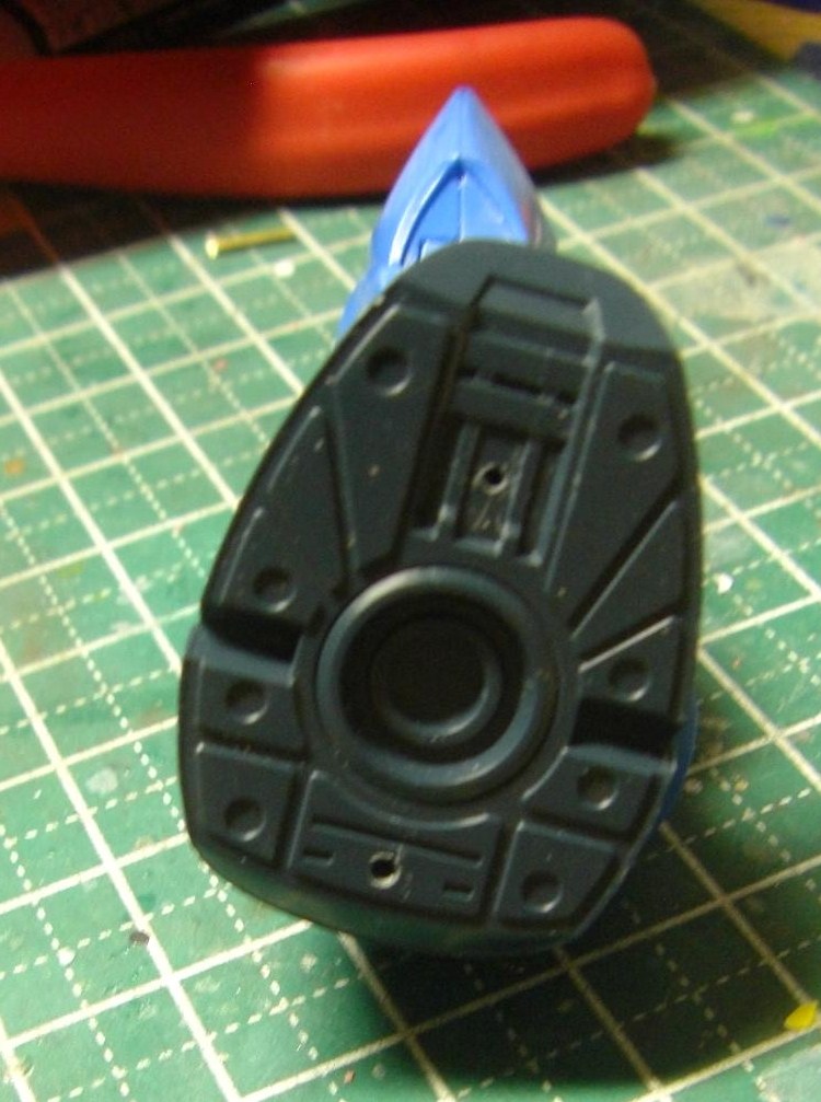続いてグフの固定ですが、磁石を使うはずが案外磁力が弱かったので、真鍮での接続にしました。なお、これは右足だけに仕込んでいます。