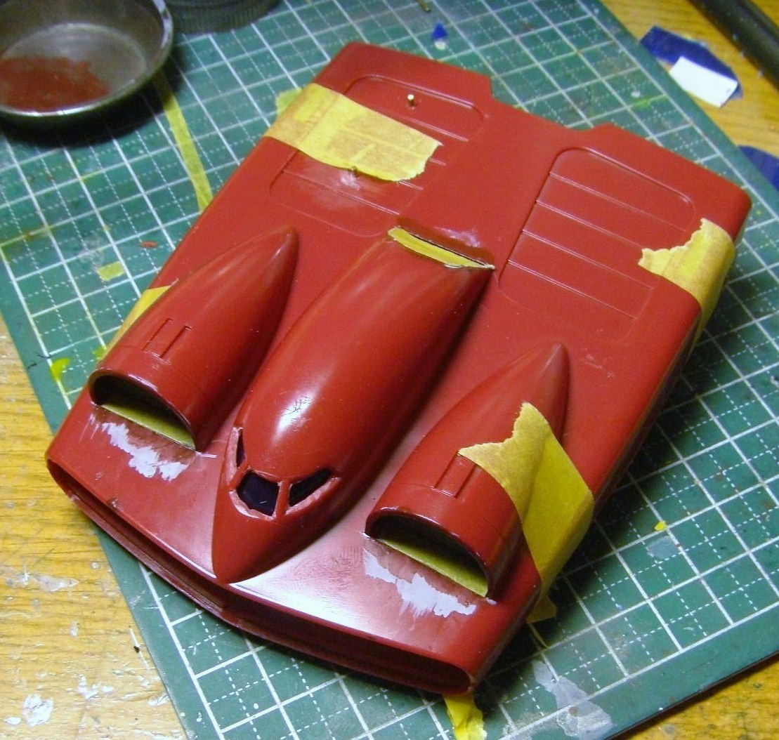 写真に撮るのを忘れていましたが、インテークそのものはニュートラルグレー、内壁はモンザレッドにブラックとブルーを少し混ぜたマルーンっぽい色を使っています。