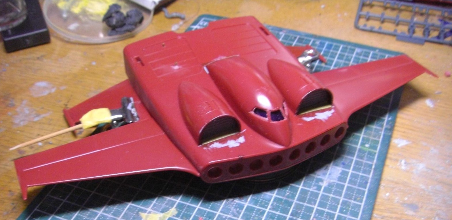 で、1時間ほど置いてから表面を処理し、翼を取り付けます・・・といっても接着はしてませんが。