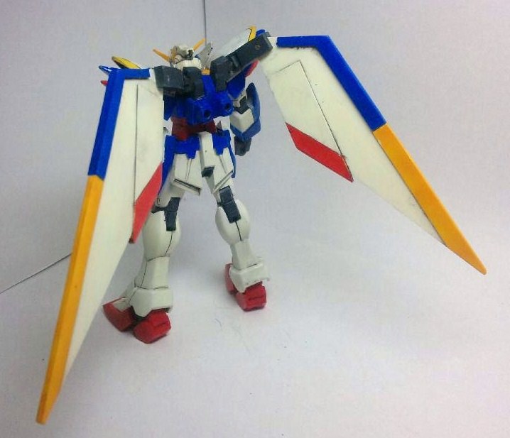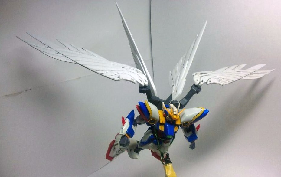 翼のアームはそのままだとかなり強度が無いので、軸受けを太らせて強度を上げています。こういうポーズをさせたいなら是非加工しとくべきです。