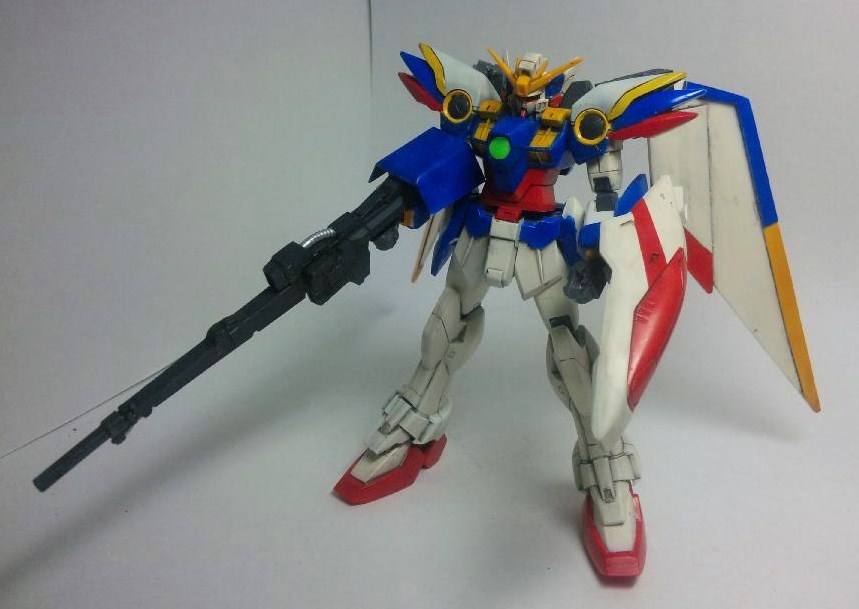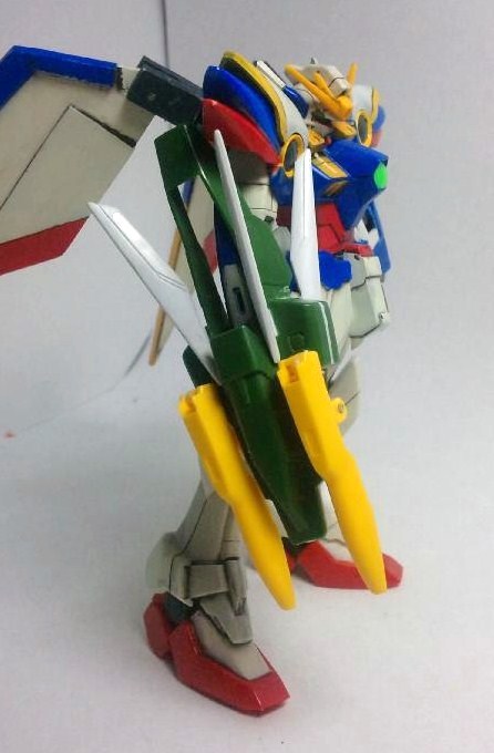 武器はツインバスターライフルの片割れを左右対称のディテールにし、後部にはプラ板製の装甲板を取り付けたバスターライフルと、エアマスターの機首をほぼそのまま使ったシールドを用意。
