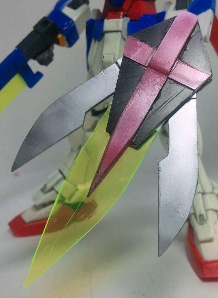 ビームサーベル。キット付属の物は翼と同じ素材なので、あんまり使いたくないですね。