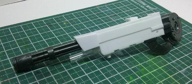 砲身とマガジンは大昔に何故かそれだけ買った、コトブキヤのアーマード・コアのオプション装備のガトリング砲の物を流用。でも本体も無いのにどうして買ったんだろう・・・?