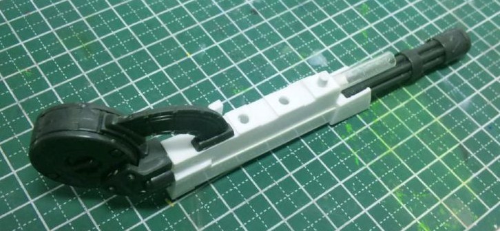 プラ板とジャンク品で組んだ大型ガトリング砲。イメージは仮面ライダーG3-Xの主武装GX-05です。