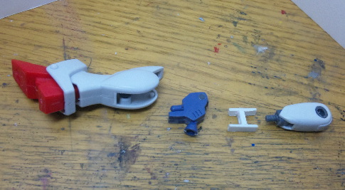 あと、バスターライフルはグリップが短すぎなので、プラ板で若干延長。その為、シールドのライフル受けも若干改修しました。