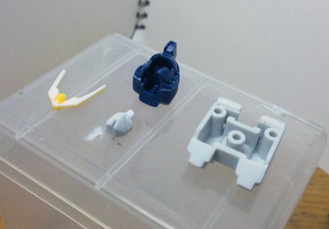 今日の主だった改修ポイント。フェイスパーツの後ハメ化やらバックパックのスラスター裏の肉抜き穴をプラ板で埋めたりしました。