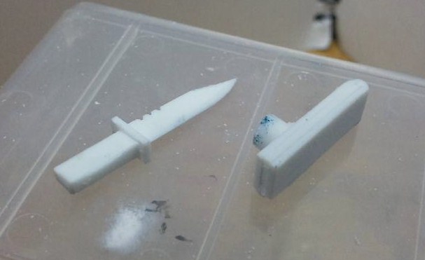 鞘はプラ板の箱組みと5ミリプラ棒、ナイフは総プラ板製です。ナイフの刃を研ぎだす作業がすっごく楽しいです(笑)