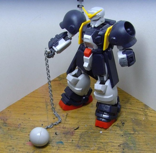 グレードアップパーツセット付属のグラビトンハンマー(金属製の鎖付き)を持たせてみた。本来はビームチェーンであるためコレは間違いなのですが、見た目としてはこちらの方がいい感じです。