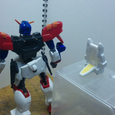 ちなみにノーマルモードの肩アーマーは、SDのマックスターから流用。こちらの方が大きさや形状が丁度良い気がします。