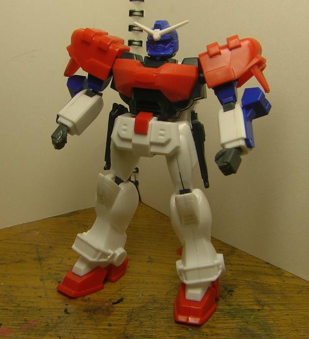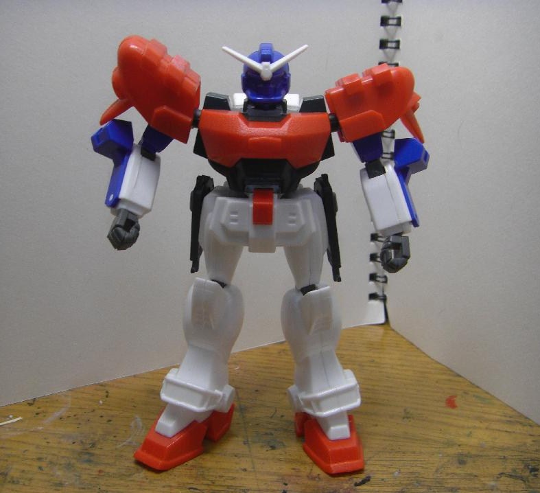 頭はアメフトのヘルメットを意識しており、顔をガードする為のバーがあるのですが、このバーが別パーツでない所為で顔が不細工なことになってます。胴体は横に広すぎ(そもそものデザインでも横幅は広めだが、コレはちょっとやりすぎかも・・・)、腰が動かないです。