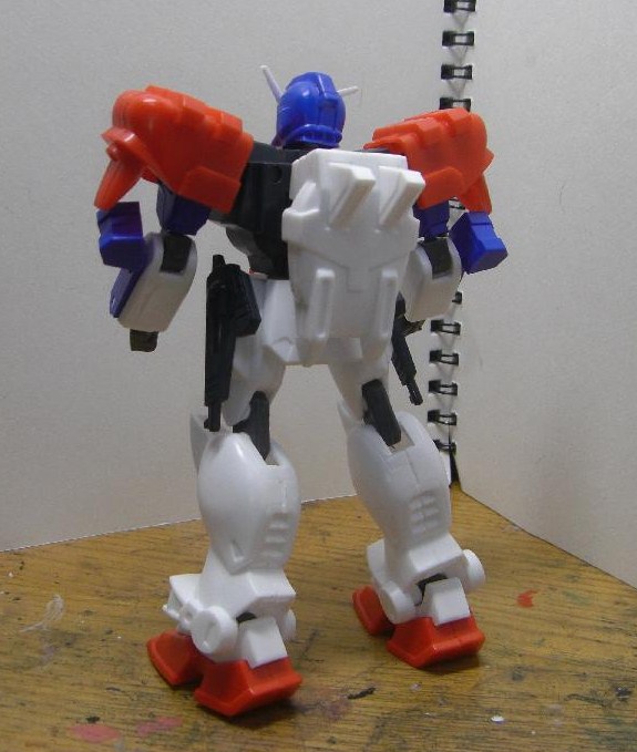 リアビュー。膝は150度くらい動きますが、小さすぎる腰フロントアーマーが固定式の為、可動が全く活かせません。