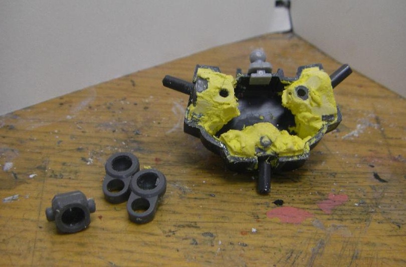 胴体は肩のピンと一体化していた腰を切り離し、接続を左端のポリキャップに変更。中はポリパテでミッチリ詰まっております(笑)