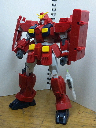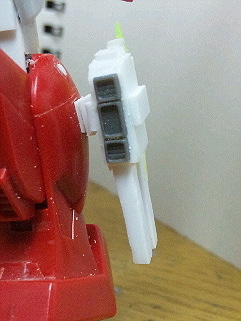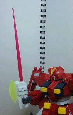 一応1/100に付属していたヒートアックスをイメージして作っていますが、オリジナル要素としてビームサーベル機能をくっつけてみました。柄がゴツいだけに中々様になっていますが、実は砲撃専用機にこんな武器要らん気が・・・ビームナイフもあるしなぁ。