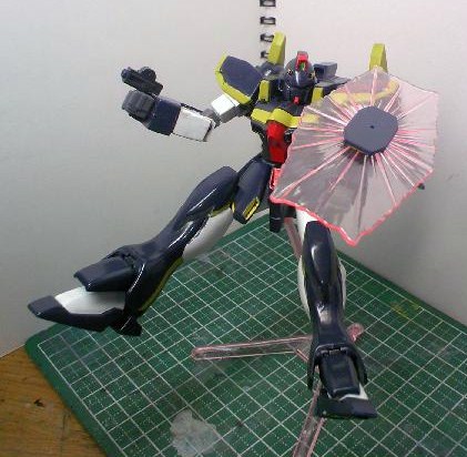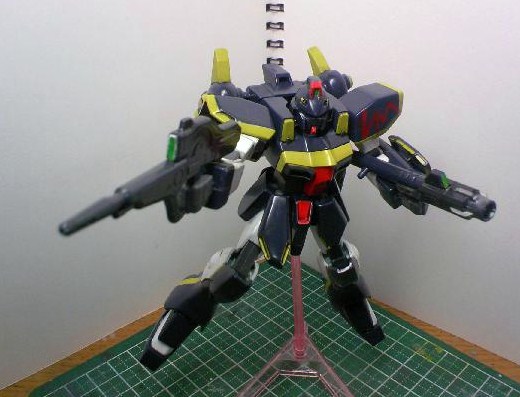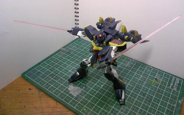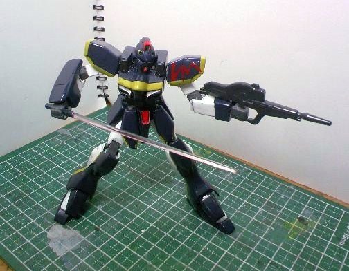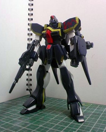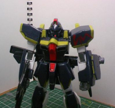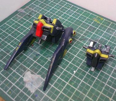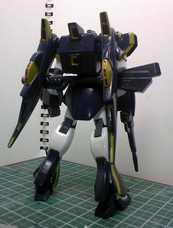 何となく元のカラーが好きになれず、宇宙空間向き(と解釈した)な濃紺のボディに、黄色のラインを書き込み、びみょーにハリソン大尉のF91を思わせる色にしました。